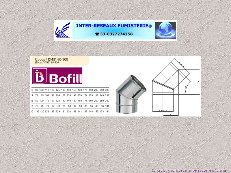 Coude pour conduit évacuation fumées simple paroi inox Aisi-304 Série 200 Ce produit est un accessoire de raccordement pour du tuyau rigide simple paroi servant à créer un conduit d'évacuation des fumées. Les diamètres indiqués sont spécifiés en millimètre. En cas de doute sur votre conception, contactez notre service technique au 33 - 03.27.27.42.58 Pour voir le plan non contractuel, cliquez ICI