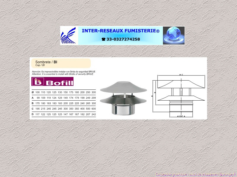 chapeau universel n° 1 pour conduit évacuation fumées simple paroi inox Aisi-304 Série 200 Ce produit est un accessoire de raccordement pour du tuyau rigide simple paroi servant à créer un conduit d'évacuation des fumées. Les diamètres indiqués sont spécifiés en millimètre. En cas de doute sur votre conception, contactez notre service technique au 33 - 03.27.27.42.58 Pour voir le plan non contractuel, cliquez ICI