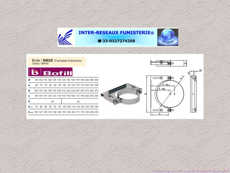 bride murale extérieure pour conduit évacuation fumées simple paroi inox Aisi-304 Série 200 - FABRICATION SPECIALE sur demande Ce produit est un accessoire de raccordement pour du tuyau rigide simple paroi servant à créer un conduit d'évacuation des fumées. Les diamètres indiqués sont spécifiés en millimètre. En cas de doute sur votre conception, contactez notre service technique au 33 - 03.27.27.42.58 Pour voir le plan non contractuel, cliquez ICI