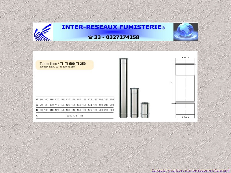 (tuyau simple paroi inox Aisi-304 Série 200 pour conduit évacuation fumées OU de ventilation) Ce produit est du tuyau rigide simple paroi pour créer un conduit d'évacuation des fumées OU de ventilation. Les diamètres indiqués sont spécifiés en millimètre. En cas de doute sur votre conception, contactez notre service technique au 33 - 03.27.27.42.58 Pour voir le plan non contractuel, cliquez ICI
