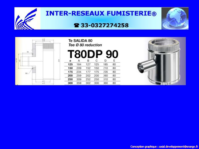 T80DPI90 250 - 90° té inox AISI-304 Série 400 |