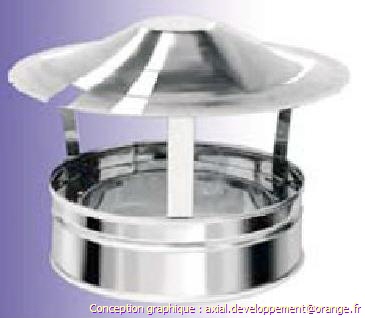 (chapeau universel pour conduit évacuation fumées double paroi inox/inox AISI-304) Ce produit est un accessoire de raccordement pour du tuyau rigide double paroi servant à créer un conduit d'évacuation des fumées. Les diamètres indiqués sont spécifiés en millimètre. En cas de doute sur votre conception, contactez notre service technique au 33 - 03.27.27.42.58 Pour voir le plan non contractuel, cliquez ICI