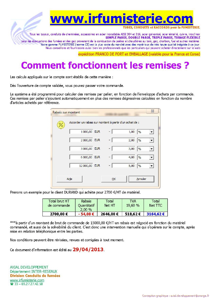 REMISES SUPPLEMENTAIRES : en fonction du montant total de votre commande, nous appliquons automatiquement une réduction complémentaire. (voir la notice d'information en cliquant ICI