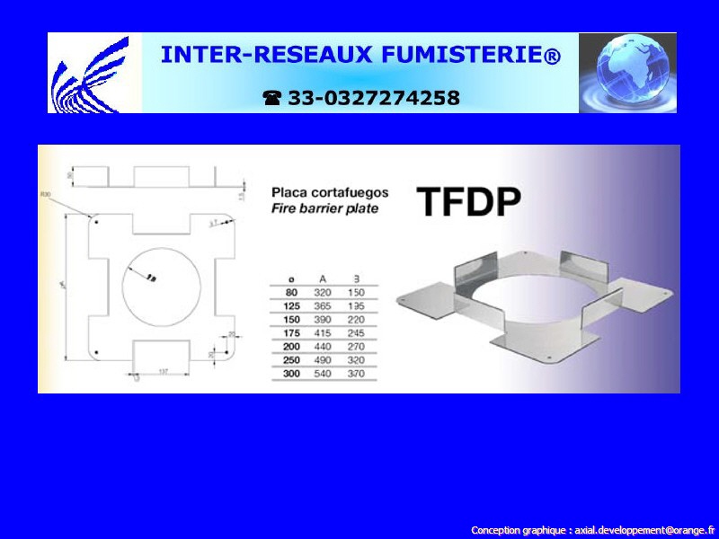 TFDP - D100 plaque coupe feu inox AISI-304 S 400 |
