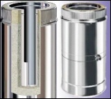 (tuyau double paroi inox Aisi-304 sur le cylindre intérieur et galvanisé sur le cylindre extérieur pour conduit évacuation) Le conduit de cheminée polycombustible modulaire BOFILL est fondamentalement constitué de deux cylindres concentriques en acier inoxydable fermés aux extrémités, et d'une coquille isolante remplie de laine de roche d'une épaisseur de 30 mm et d'une densité de 125 kg/m3, comportant des rondelles d'une épaisseur de 50 mm et d'une densité de 175 Kg/m3 qui la comprime aux extrémités. Ce produit est du tuyau rigide double paroi pour créer un conduit d'évacuation des fumées. Les diamètres indiqués sont spécifiés en millimètre. En cas de doute sur votre conception, contactez notre service technique au 33 - 03.27.27.42.58 Pour voir le plan non contractuel, cliquez ICI *le tableau des cotations est donné à titre indicatif, et n'est donc pas un document contractuel Pour retourner à la page de présentation de tous les accessoires de cette série, cliquez ICI Pour retourner à la page de présentation de tous les tuyaux de cette série, cliquez ICI Pour retourner à la page de présentation de toute la collection, cliquez ICI