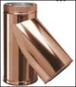 té 45° + purge série C500 double paroi inox Aisi-304 sur le cylindre intérieur et cuivre véritable sur le cylindre extérieur Ce produit est un accessoire de raccordement pour du tuyau rigide double paroi servant à créer un conduit d'évacuation des fumées. Les diamètres indiqués sont spécifiés en millimètre. En cas de doute sur votre conception, contactez notre service technique au 33 - 03.27.27.42.58 Pour voir le plan non contractuel, cliquez ICI