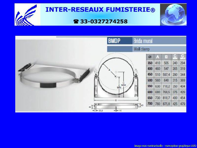 BMDP - D400 bride murale inox AISI-304 Série 420 |