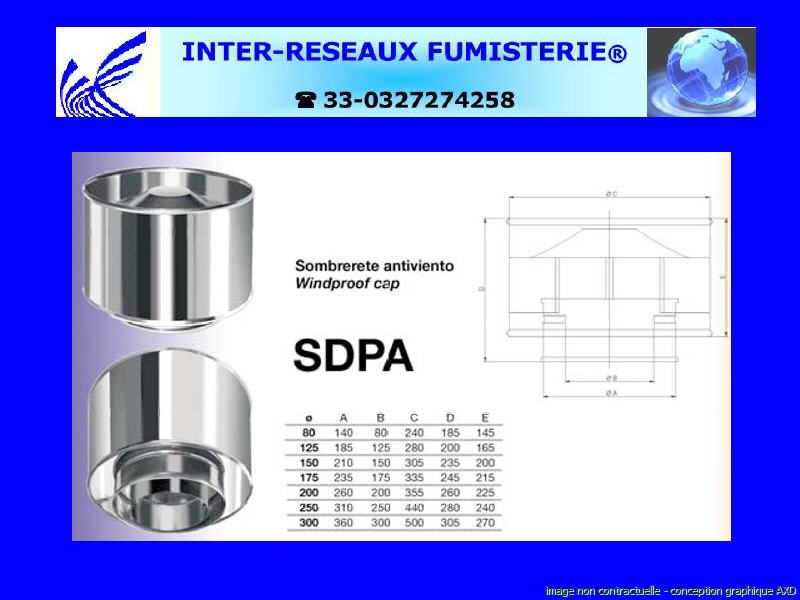 SDPAI - D250 chapeau antivent inox AISI-316 S410 |