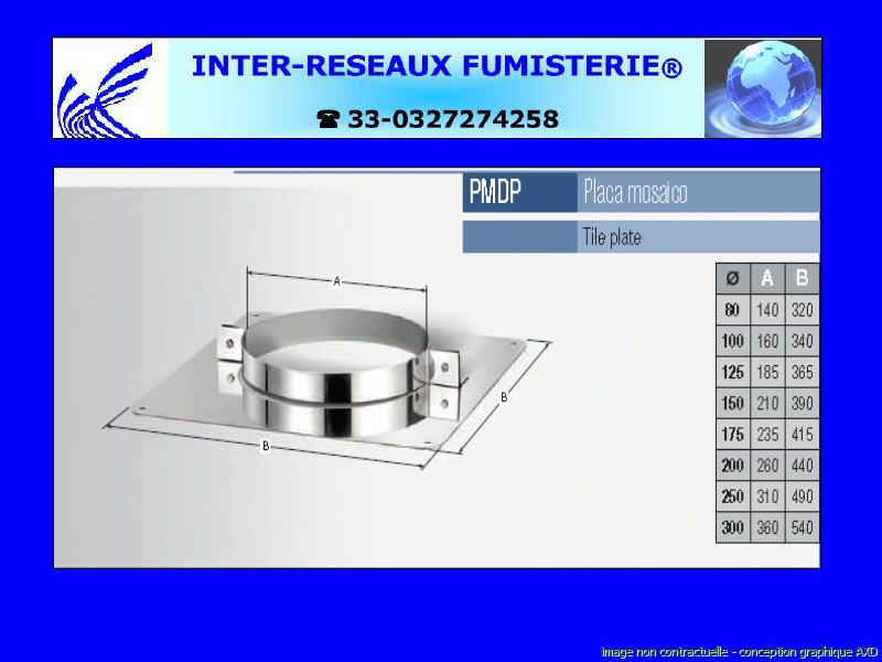 support de dalle double paroi isolé série 400 Ce produit est un accessoire de raccordement pour du tuyau rigide double paroi servant à créer un conduit d'évacuation des fumées. Les diamètres indiqués sont spécifiés en millimètre. En cas de doute sur votre conception, contactez notre service technique au 33 - 03.27.27.42.58 Pour voir le plan non contractuel, cliquez ICI