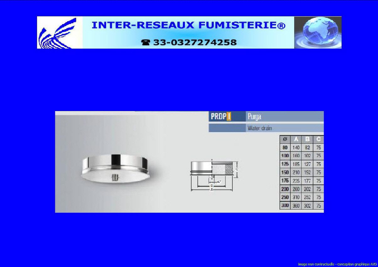 tampon purge double paroi isolé série 410 Ce produit est un accessoire de raccordement pour du tuyau rigide double paroi servant à créer un conduit d'évacuation des fumées. Les diamètres indiqués sont spécifiés en millimètre. En cas de doute sur votre conception, contactez notre service technique au 33 - 03.27.27.42.58 Pour voir le plan non contractuel, cliquez ICI