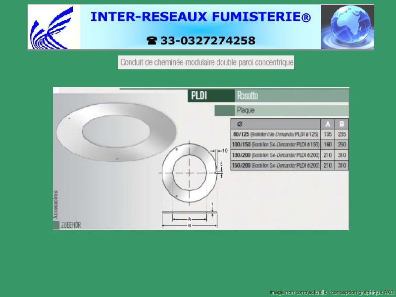 Plaque de finition pour double paroi concentrique inox Série CO330 Le conduit de cheminée BOFILL série DI est un conduit modulaire composé de deux cylindres concentriques en acier inoxydable Aisi-316L cylindre interne et Aisi-304 cylindre extérieur, soudés au laser longitudinalement (une garantie pour la fermeture correcte des cylindres et pour l'étanchéité parfaite de chacun d'eux). L'évacuation des gaz de l'appareil se fait par le conduit interne et l'entrée d'air pour la combustion, par la cavité formée entre les deux cylindres. Il possède une excellente résistance à la corrosion résultant de la teneur en soufre des gaz condensés et de la PdC du fioul. Il est équipé d'un système d'assemblage étanche type "clic" avec un joint en silicone dans le conduit interne qui résiste à des températures allant jusqu'à 200°C. Les diamètres indiqués sont spécifiés en millimètre. En cas de doute sur votre conception, contactez notre service technique au 33 - 03.27.27.42.58 Pour voir le plan non contractuel, cliquez ICI
