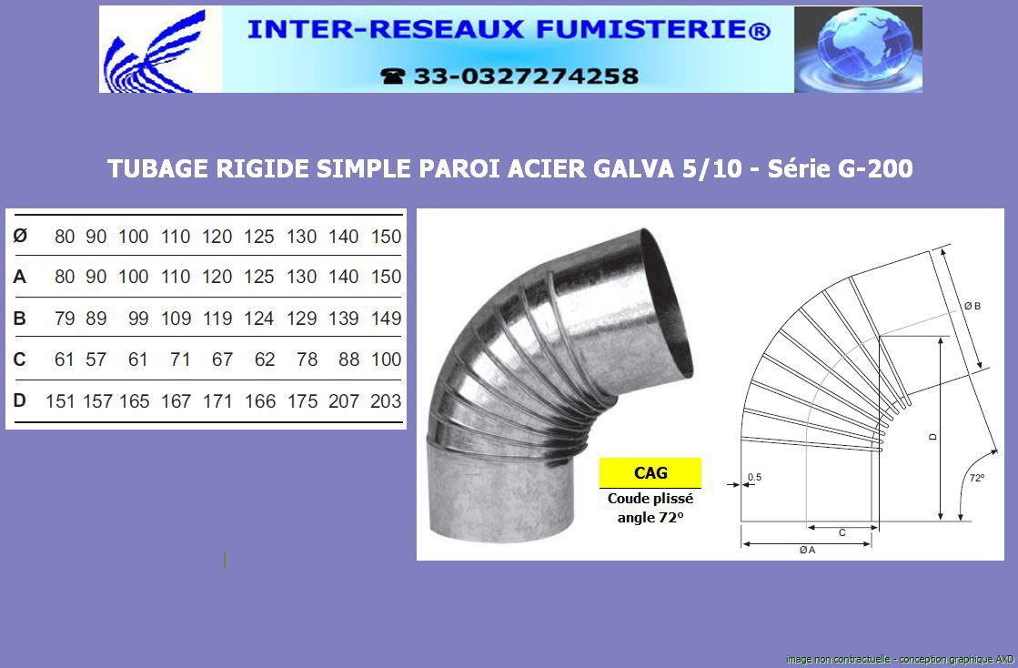 CAG 130 - 72° coude acier SP galva G200 5/10 |
