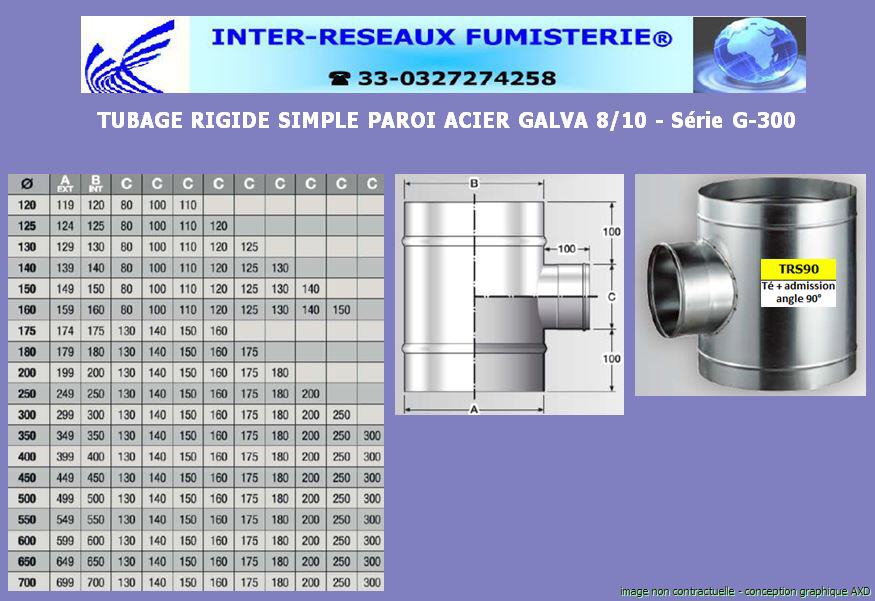 TRS90 D300 - 90° té simple + admiss réduite G300 (BFTRS90GAL0,8-D300) Té 90° + admission réduite pour conduit évacuation fumées simple paroi galva 108,83 EUR (incl. TVA à 20%)