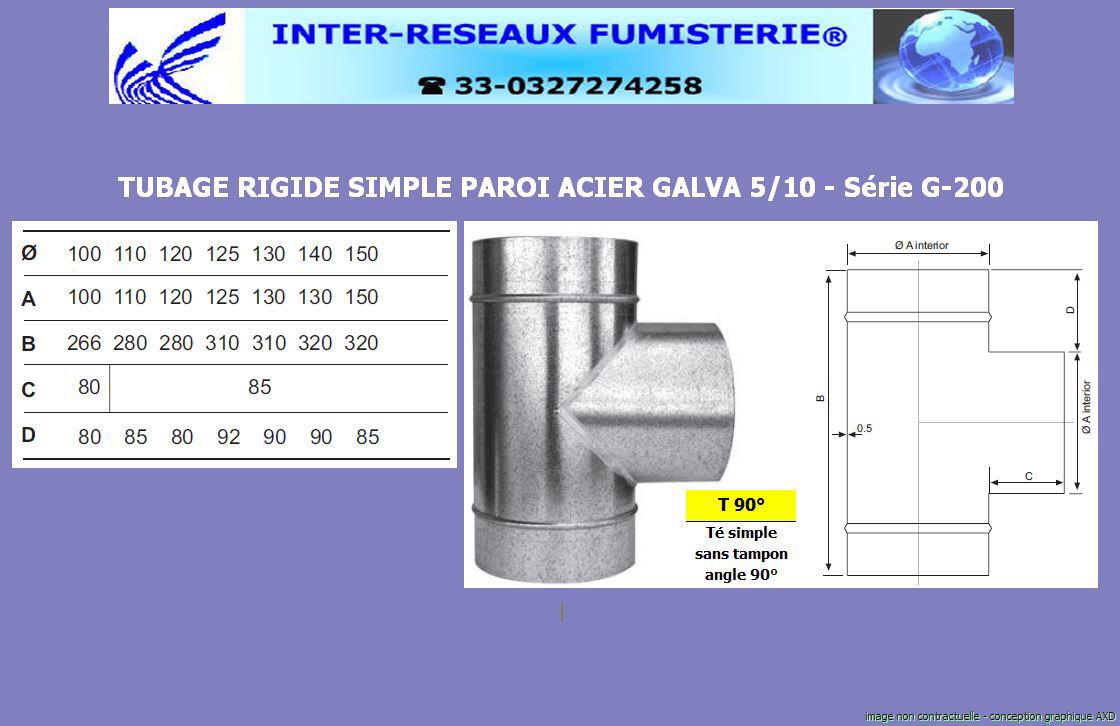 T D150 - 90° té simple SP acier galva G200 5/10 |