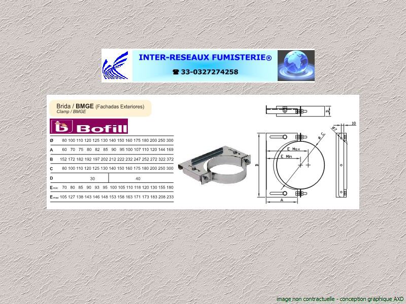 bride murale extérieure pour conduit évacuation fumées simple paroi inox Aisi-304 Série 200 Ce produit est un accessoire de raccordement pour du tuyau rigide simple paroi servant à créer un conduit d'évacuation des fumées. Les diamètres indiqués sont spécifiés en millimètre. En cas de doute sur votre conception, contactez notre service technique au 33 - 03.27.27.42.58 Pour voir le plan non contractuel, cliquez ICI