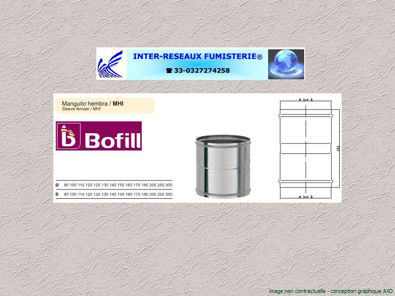 manchon femelle pour conduit évacuation fumées simple paroi inox Aisi-304 Série 200 Ce produit est un accessoire de raccordement pour du tuyau rigide simple paroi servant à créer un conduit d'évacuation des fumées. Les diamètres indiqués sont spécifiés en millimètre. En cas de doute sur votre conception, contactez notre service technique au 33 - 03.27.27.42.58 Pour voir le plan non contractuel, cliquez ICI