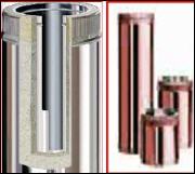 tuyau série C500 double paroi inox Aisi-304 sur le cylindre intérieur et cuivre véritable sur le cylindre extérieur) Le conduit de cheminée polycombustible modulaire BOFILL est fondamentalement constitué de deux cylindres concentriques en acier inoxydable fermés aux extrémités, et d'une coquille isolante remplie de laine de roche d'une épaisseur de 30 mm et d'une densité de 125 kg/m3, comportant des rondelles d'une épaisseur de 50 mm et d'une densité de 175 Kg/m3 qui la comprime aux extrémités. Ce produit est du tuyau rigide double paroi pour créer un conduit d'évacuation des fumées. Les diamètres indiqués sont spécifiés en millimètre. En cas de doute sur votre conception, contactez notre service technique au 33 - 03.27.27.42.58 Pour voir le plan non contractuel, cliquez ICI