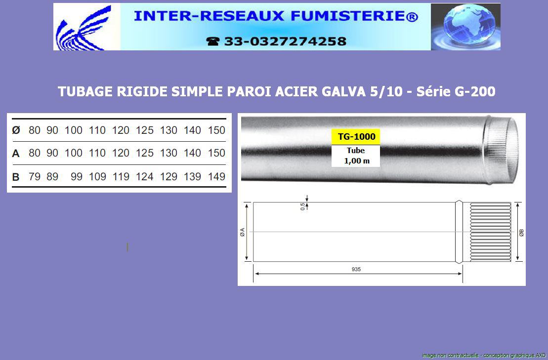 TG diam 125 - lg 1000 Tube acier galva G200 5/10 |